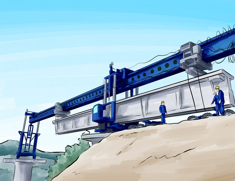 1、主機過孔完成后,后支腿用鋼墊塊墊起,使4個墊墩著地受力,并用精軋螺紋鋼和手拉葫蘆錨固(橋臺處只用手拉葫蘆錨固)。 2、必須確認遙控器同時選擇主機、輔助支腿行走電機,利用遙控器